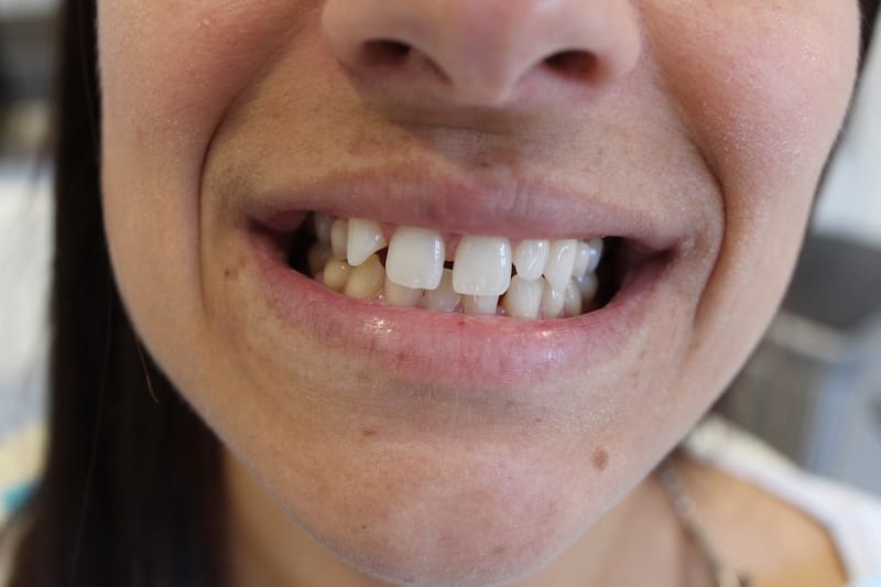 Missing teeth, narrow smile, gaps in teeth